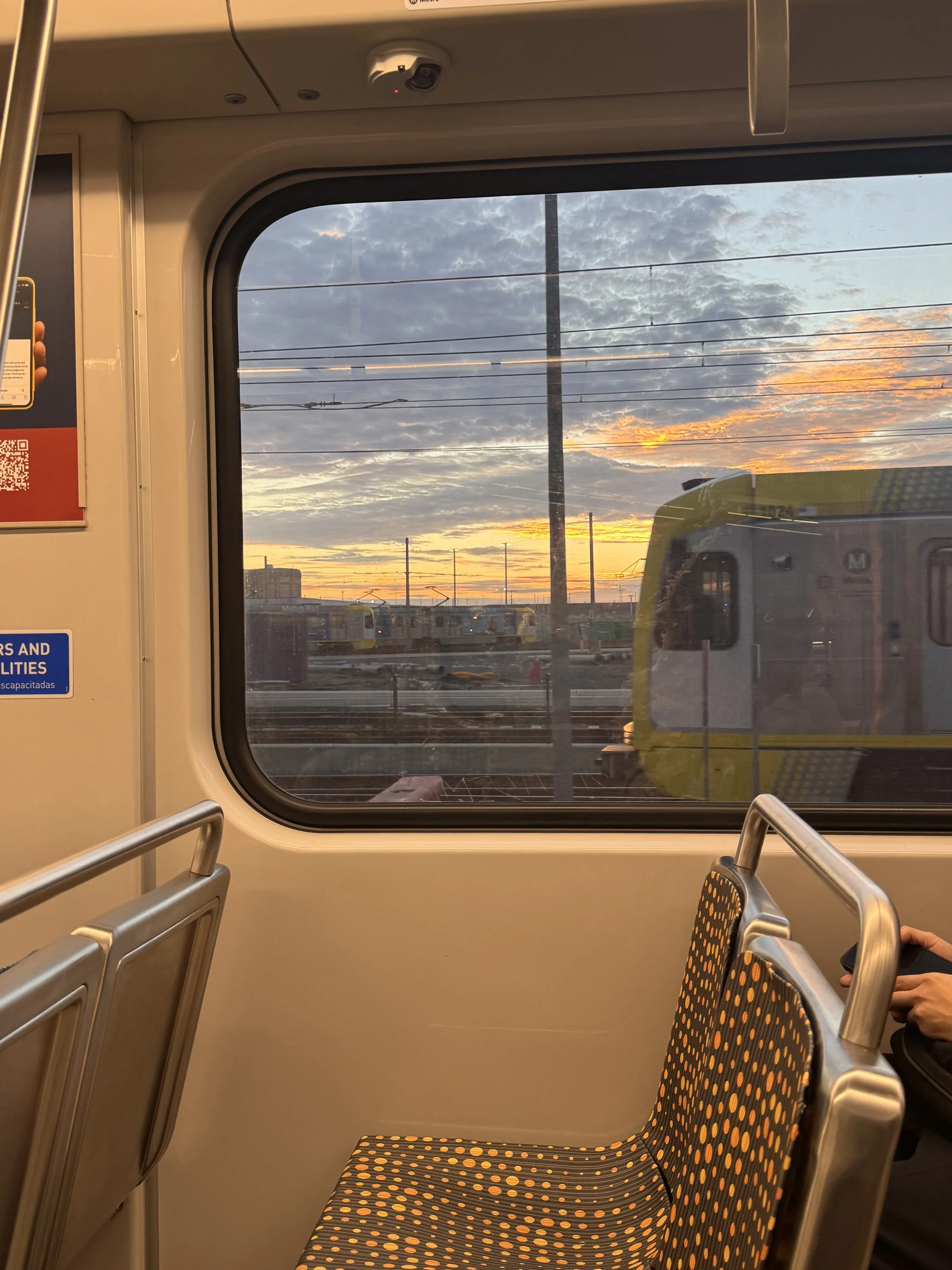 The K Line train was clean and mostly empty, even during weekday rush hour. It’s not the most scenic of routes, but the ride was quick and easy. LA is known for its shitty public transportation, so the bar is low here!!