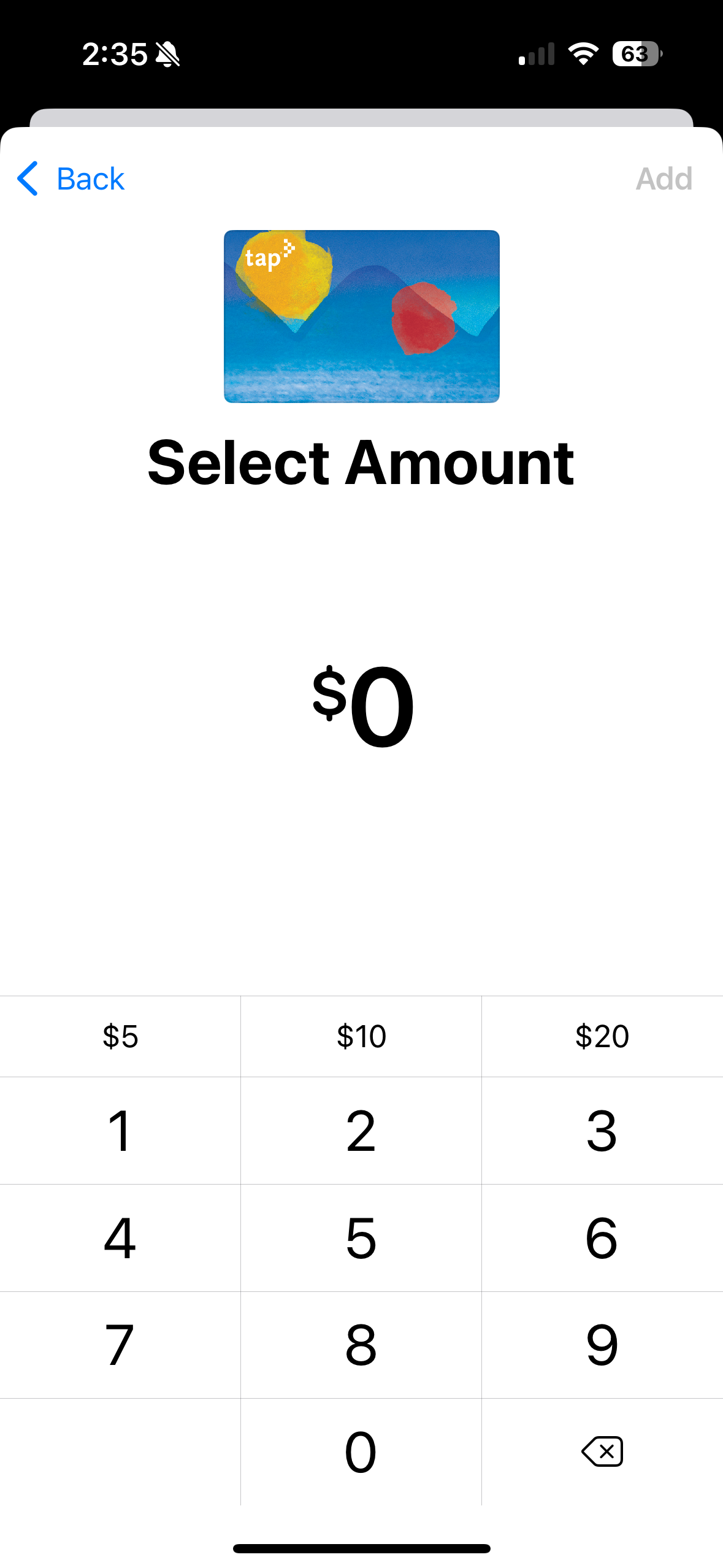 Select amount of funds to add - minimum is $1 (one-way fares are currently $1.75; see current rates at Metro’s website)