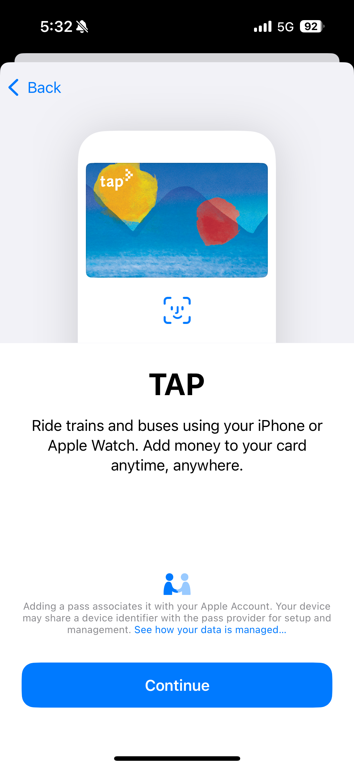 You can’t tap directly with Apple Pay like in NYC and London — you must have a TAP Card! You can buy a physical TAP Card from a vending machine at the station OR you can load a virtual TAP Card onto your smartphone and add funds there. It’s a good idea to set up your virtual card while riding the shuttle to the station.