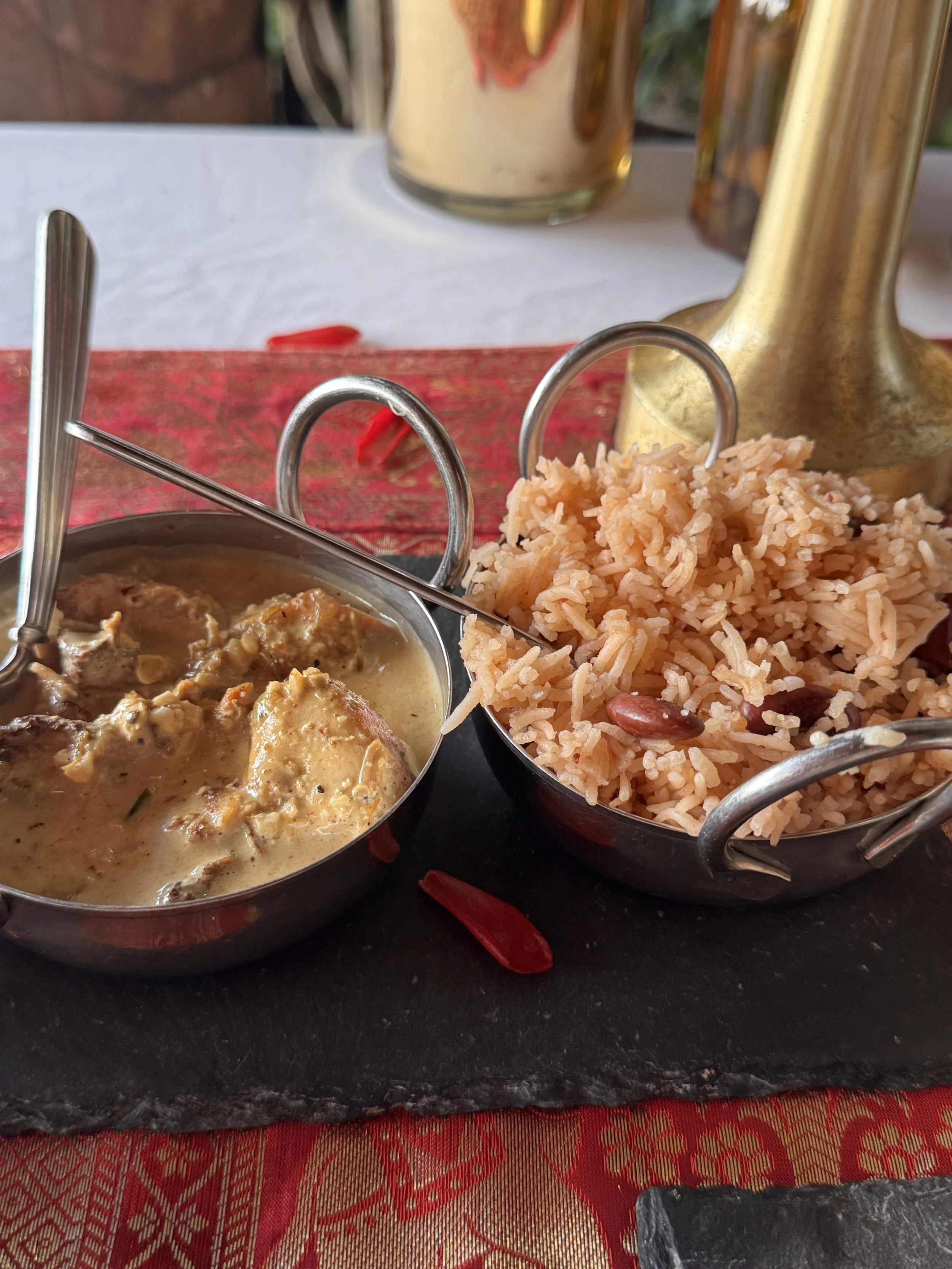 The food was served in three courses — appetizer, main, and dessert. Everything was delicious!